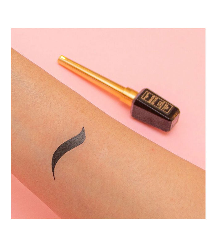 Delineador líquido preto de secagem rápida e acabamento fosco à prova d'água.